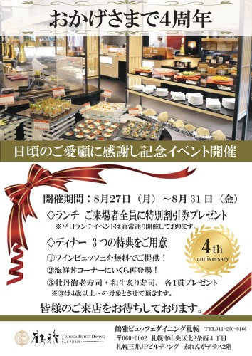 鶴雅ビュッフェダイニング札幌 4周年記念
