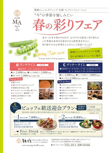 2016年3月より、鶴雅ビュッフェダイニング札幌【春の彩りフェア】を開催いたします。